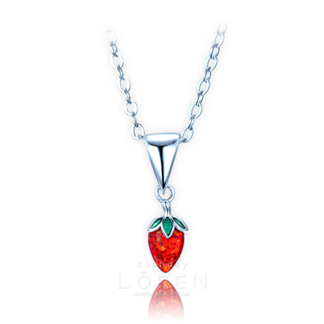 Náhrdelník strieborný - Jahoda s červeným opálom