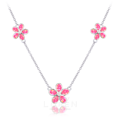 Náhrdelník strieborný - Kvet s ružovým opálom