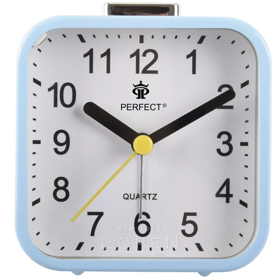 Praktický budík Perfect modro-biely s jednoduchým moderným dizajnom. Medzi jeho výhody patrí napríklad osvetlenie ciferníku. Istotne oceníte opakované a postupné zosilňujúce budenie, ktoré je naviac kombinované so svetlom. Ak máte radi v noci kľud, tento budík je presne pre vás, chod strojčeka je naozaj tichý.