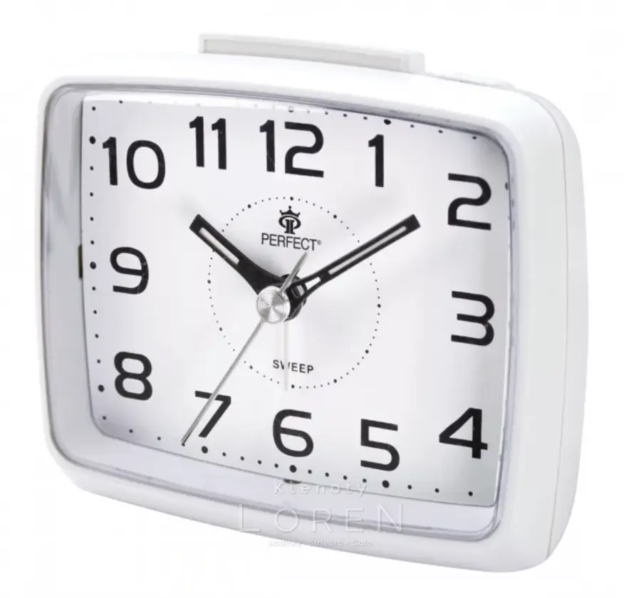 Praktický budík Perfect v bielej farbe s jednoduchým moderným dizajnom. Medzi jeho výhody patrí napríklad osvetlenie ciferníku. Istotne oceníte opakované a postupné zosilňujúce budenie, ktoré je naviac kombinované so svetlom. Ak máte radi v noci kľud, tento budík je presne pre vás, chod strojčeka je naozaj tichý.