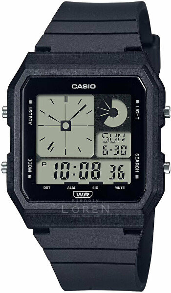 Digitálne hodinky LF-20W-1AEF od Casio sú perfektným doplnkom, ktorý upúta na prvý pohľad. Členitý digitálny displej je veľmi dobre čitateľný a zobrazíte na ňom okrem aktuálneho času, aj čas v analógovom prevedení, stopky , odpočet, svetový čas či dátum. Samozrejme nechýba LED podsvietenie, hodinový signál, 5 alarmov alebo kompletné vypnutie/zapnutie všetkých tónov hodiniek.