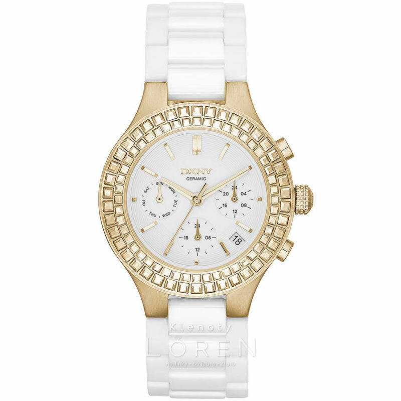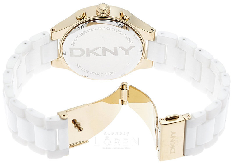 Krásne dámske hodinky od DKNY sú stelesnením elegancie a luxusu. Ich puzdro lemujú miniatúrne zlaté štvorčeky, ktoré sa nádherne lesknú. Okrúhly ciferník bielej farby zdobia zlaté ručičky a indexy, v jeho spodnej časti sa nachádza dátumovka. Keramický náramok v bielej farbe dokonale ladí s ciferníkom, vďaka čomu celý model hodiniek pôsobí veľmi rafinovane a štýlovo.