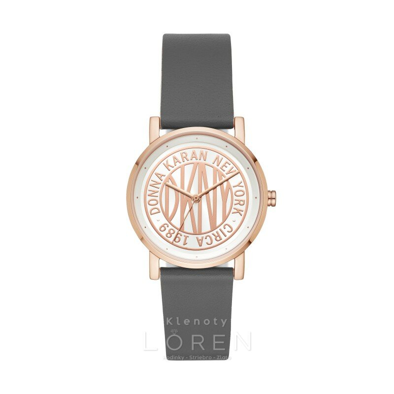 Biely ciferník s logom značky v kombinácií s ružovým zlatom vytvárajú na hodinkách čistý elegantný vzhľad. Hodinky sú doplnené tmavošedým matným koženým remienkom s prackou vo farbe ružového zlata.