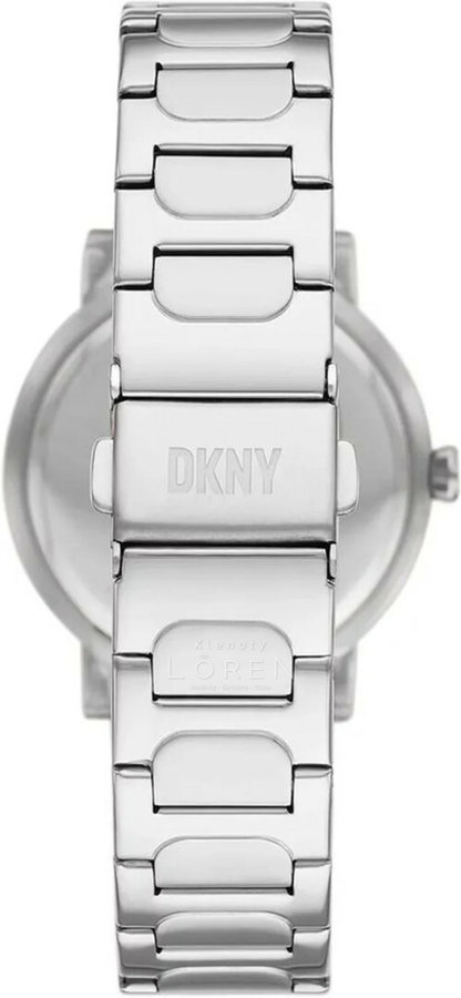 Elegantné dámske hodinky z nerezovej ocele s PVD úpravou. Ciferník zdobí logo značky DKNY. Kovový náramok je doladený k púzdru hodiniek s matnou a lesklou povrchovou úpravou.