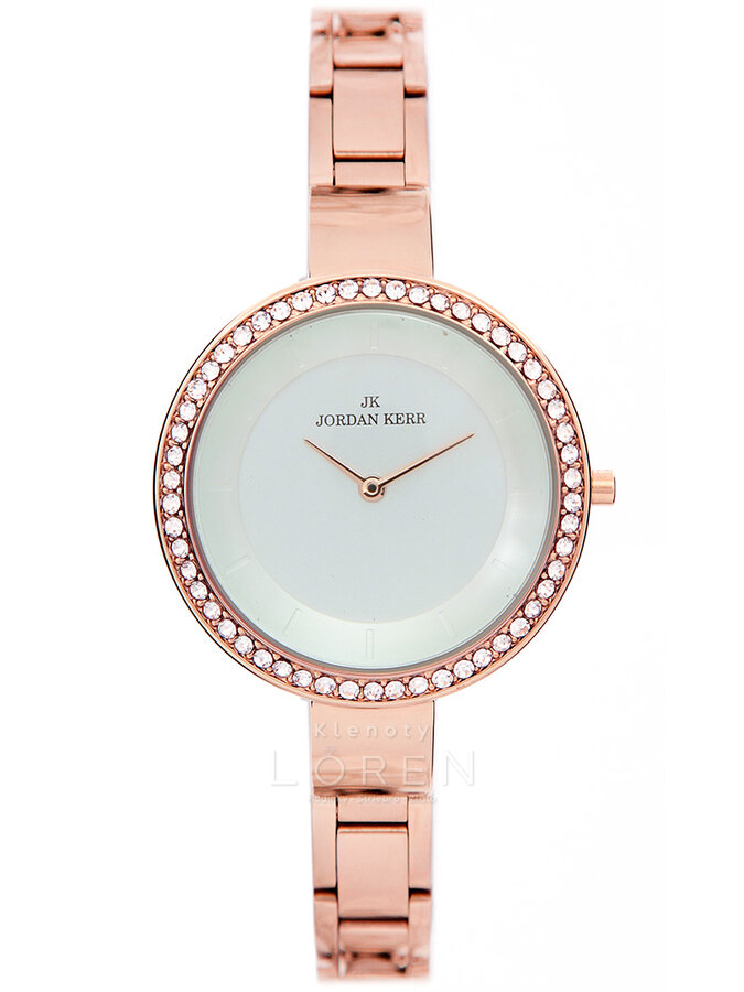 Elegantné dámske hodinky Jordan Kerr, so strieborným kruhovým ciferníkom so zaujímavo zvýraznenými indexmi na presné určenie času. Po obvode ciferníka sú osadené číre zirkóny.