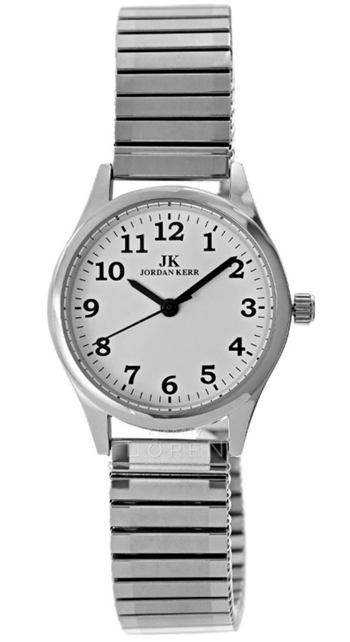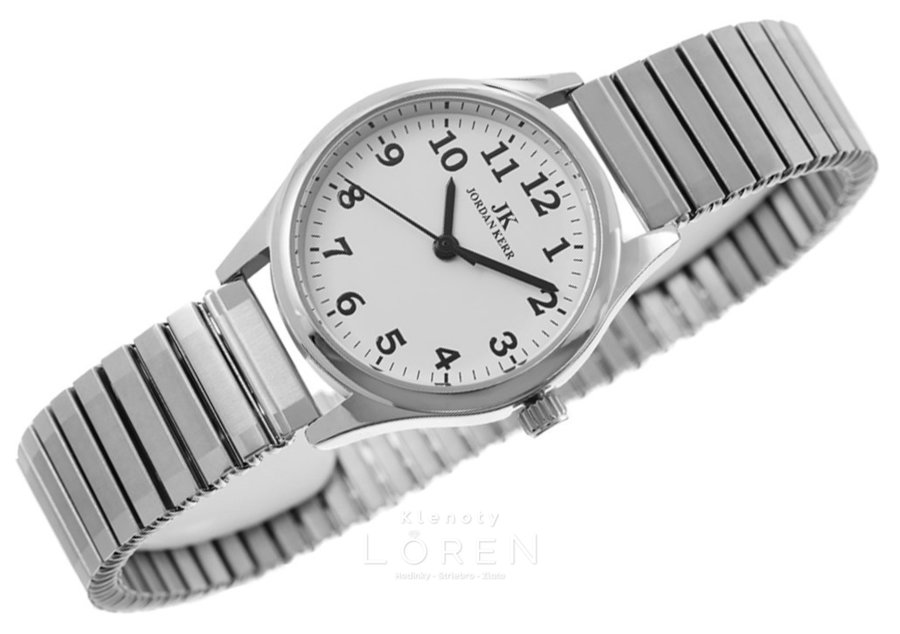 Dámske hodinky Jordan Kerr s bielym kruhovým ciferníkom a prehľadným zobrazením číslic. Hodinky majú IPS antialergickú povrchovú úpravu v striebornej farbe. Sú vhodné na bežné nosenie a aj na spoločenské udalosti. Vďaka kovovému náramku typu ťah sa dajú jednoducho navliekať na zápästie.