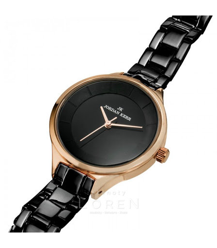 Elegantné dámske hodinky Jordan Kerr, s čiernym okrúhlym ciferníkom osadeným v puzdre vo farbe ružového zlata. Hodinky majú IPS antialergickú povrchovú úpravu v čiernej farbe. Sú vhodné na bežné nosenie a aj na spoločenské udalosti.