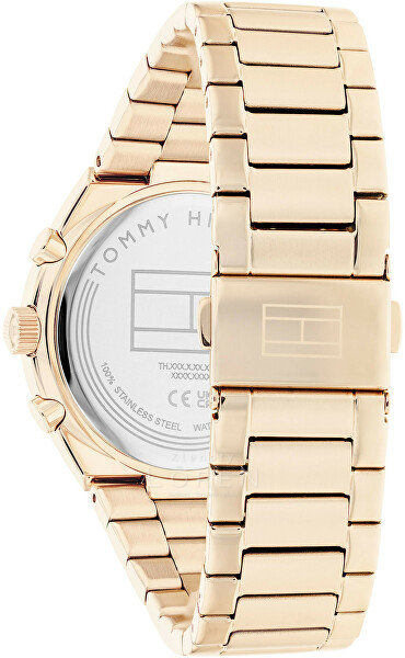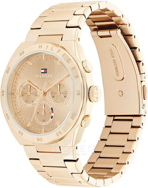 Elegantné dámske hodinky Tommy Hilfiger si zamilujete na prvý pohľad. Zaujmú vás tri subciferníky zobrazujúce dátum, deň v týždni a 24h čas . Nechýba ani logo značky, pozlátené ručičky a indexy. Puzdro aj ťah sú vyrobené z kvalitnej ušľachtilej ocele v luxusnej rosegold úprave. Také hodinky ľahko skombinujete s akýmkoľvek outfitom.
