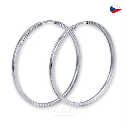 Dámske kruhové zlaté náušnice v bielom zlate hranaté s dekorom