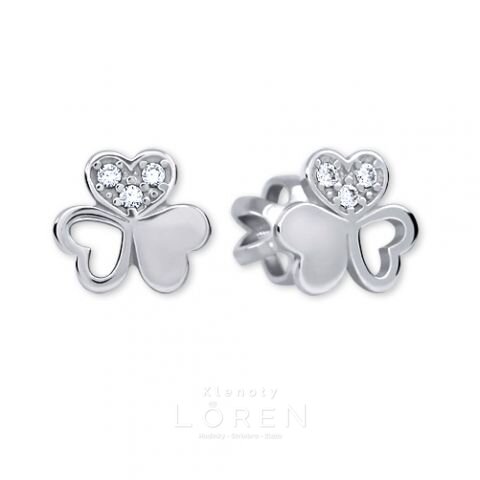 Minimalistické náušnice z bieleho zlata v tvare trojlístka.