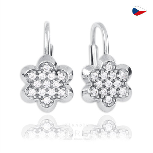 Dámske náušnice z bieleho zlata so žiarivými zirkónami v tvare kvietka.
