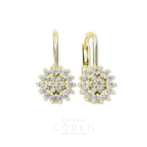 Dámske náušnice zo žltého zlata so žiarivými zirkónami.