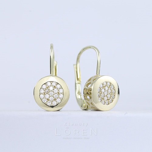 Dámske náušnice zo žltého zlata so žiarivými zirkónami.