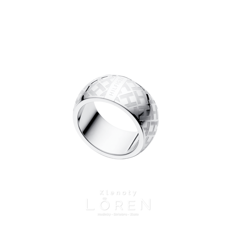 Dámsky, oceľový prsteň Tommy Hilfiger v striebornej farbe, prsteň zdobí logo značky.