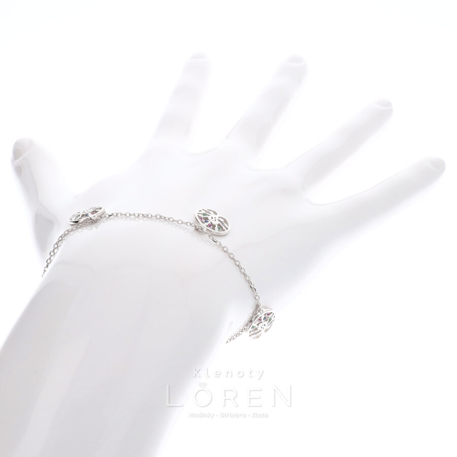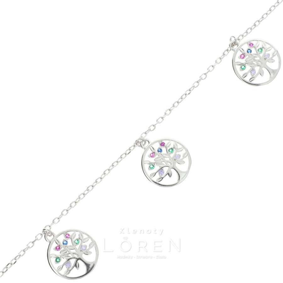 Dámsky strieborný náramok so stromčekom šťastia s farebnými zirkónmi.