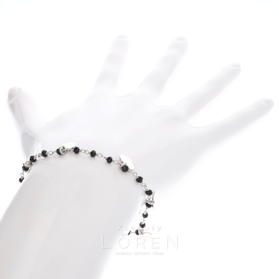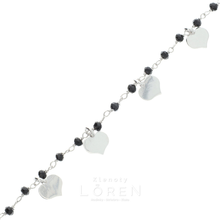 Dámsky, strieborný náramok so srdiečkami a čiernymi zirkónmi po celom obvode náramku.