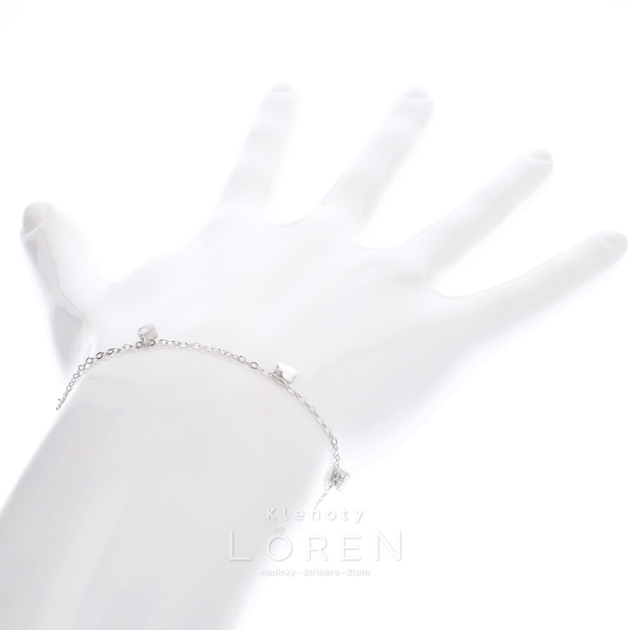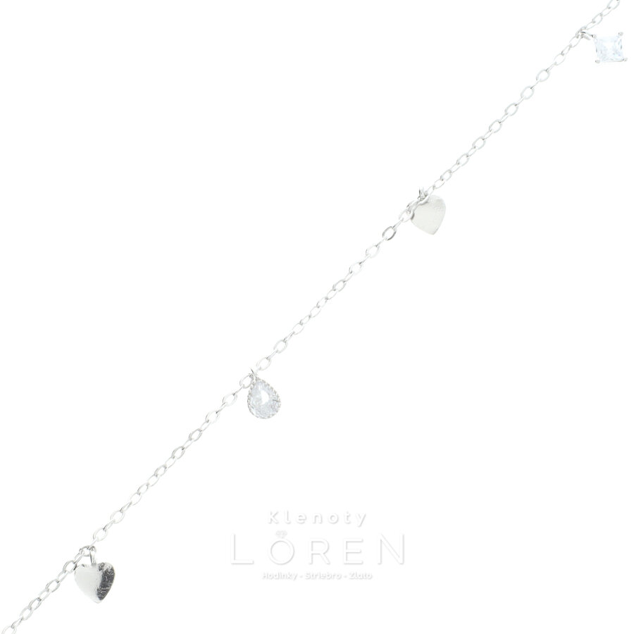Dámsky, strieborný náramok s jemnými srdiečkami a žiarivými zirkónmi po celom obvode náramku.