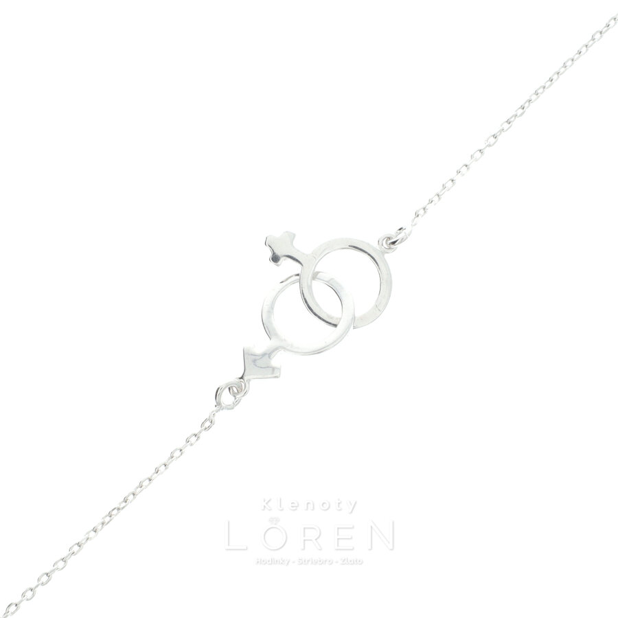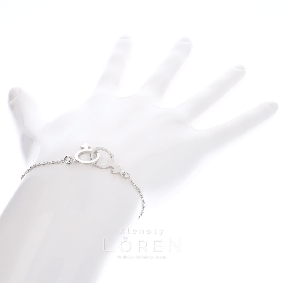 Dámsky, strieborný náramok s príveskom MAN and WOMAN.