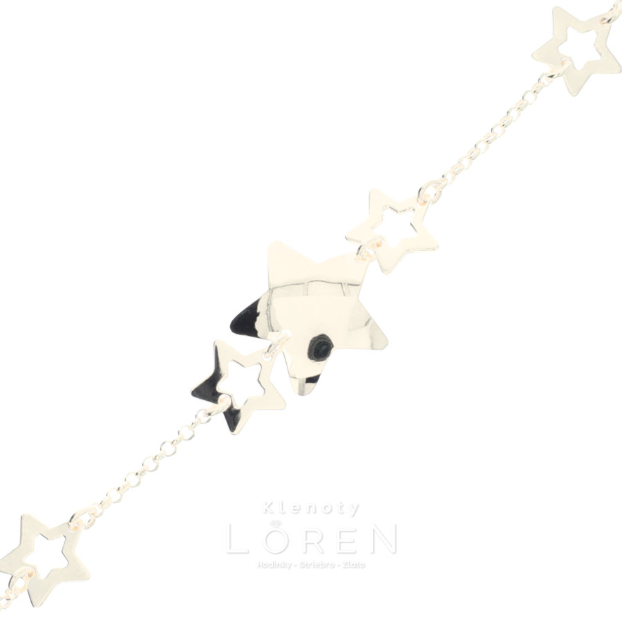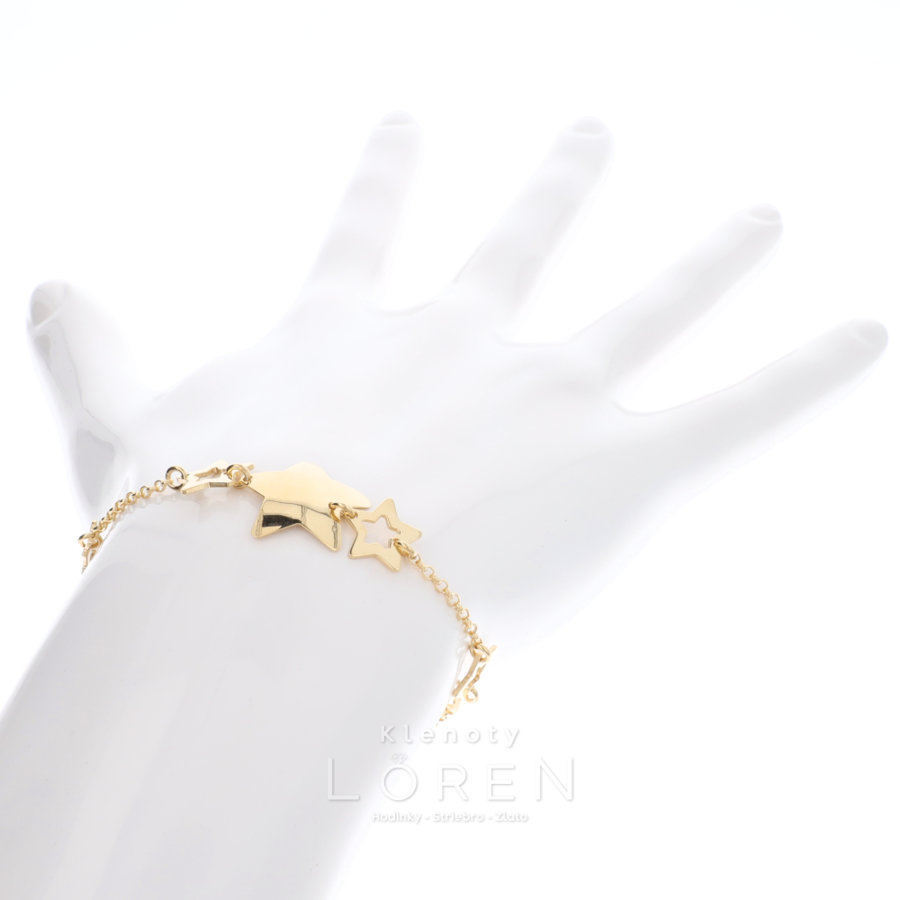 Dámsky, strieborný náramok v zlatej farbe s hviezdičkami.