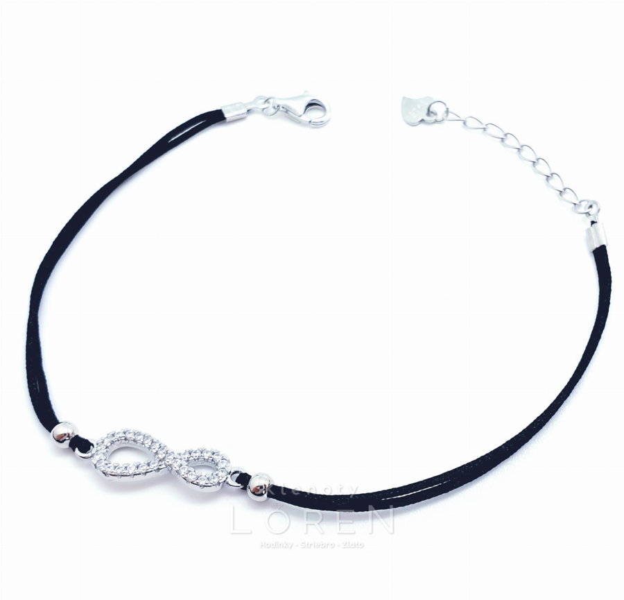 Dámsky náramok na čiernej šnúrke so strieborným príveskom - srdiečko.