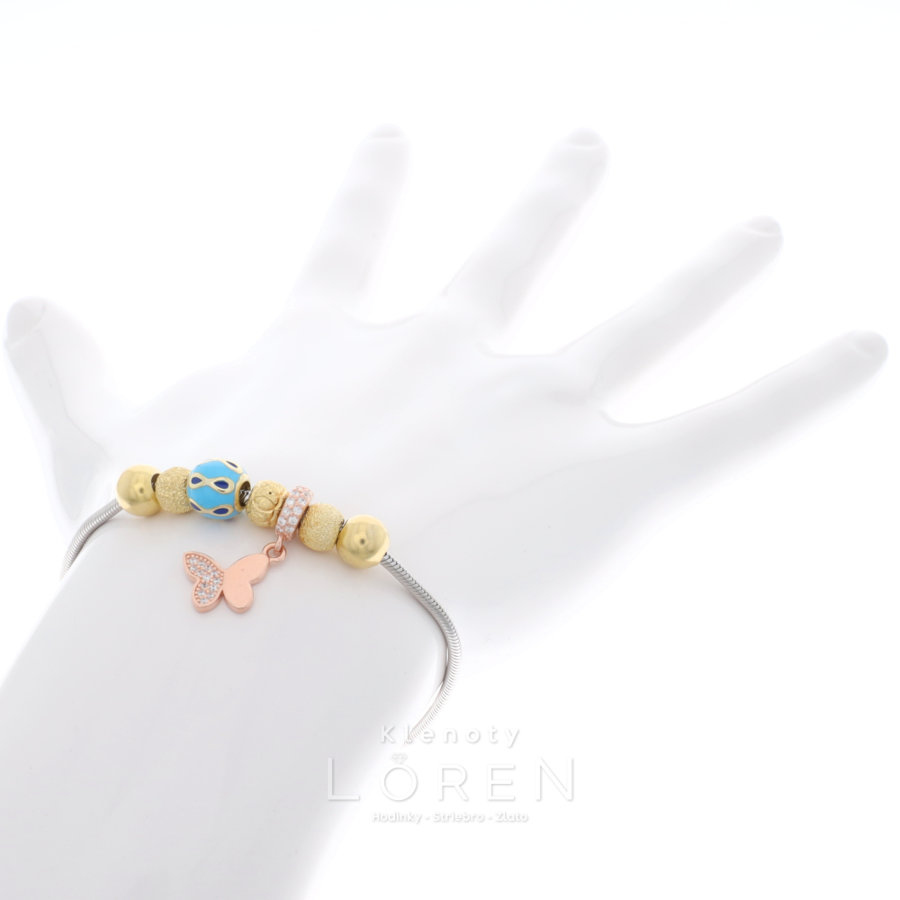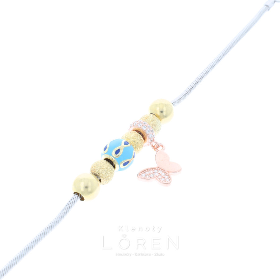 Jemný, dámsky, strieborný náramok v zlatej farbe