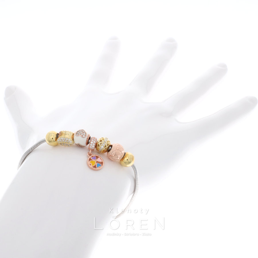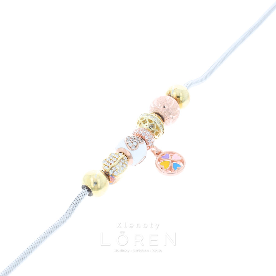 Jemný, dámsky, strieborný náramok v zlatej farbe