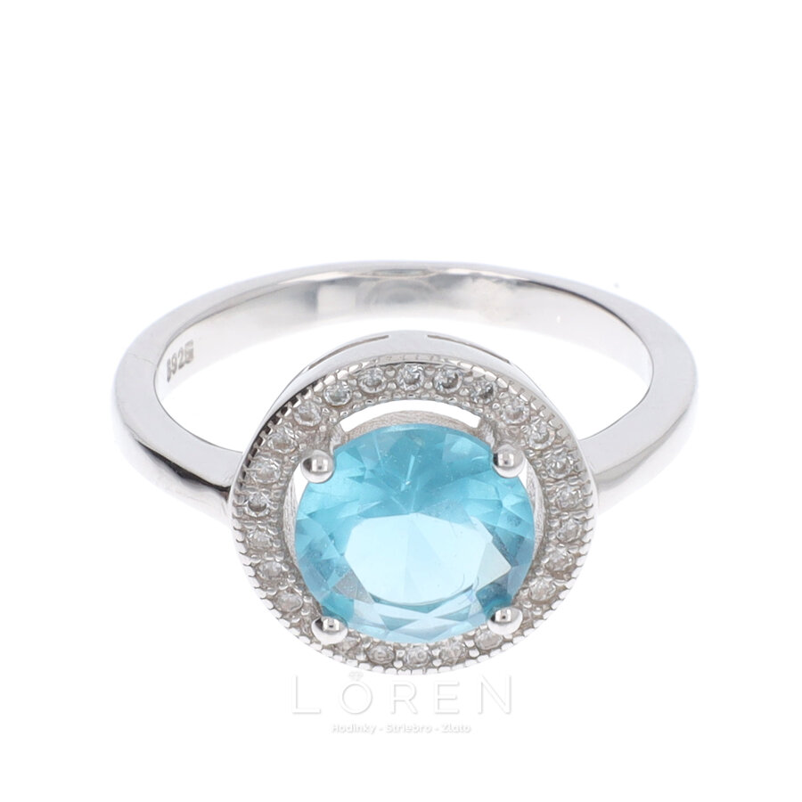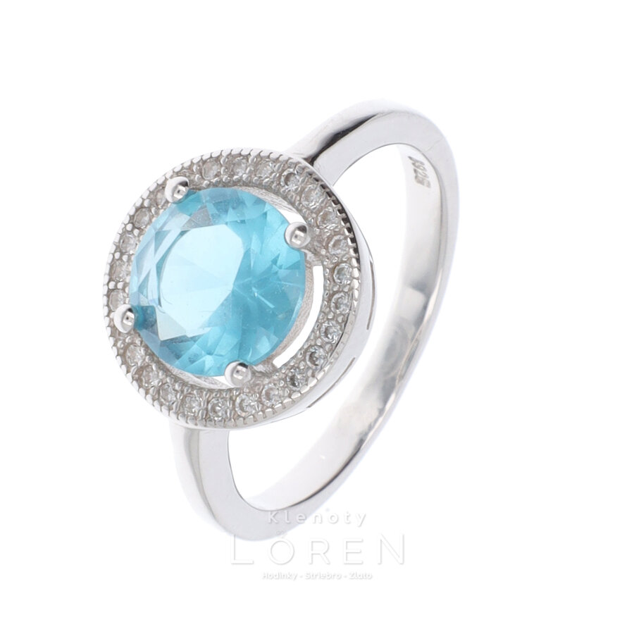 Dámsky strieborný prsteň s modrím zirkónom a s bielymi zirkónmi