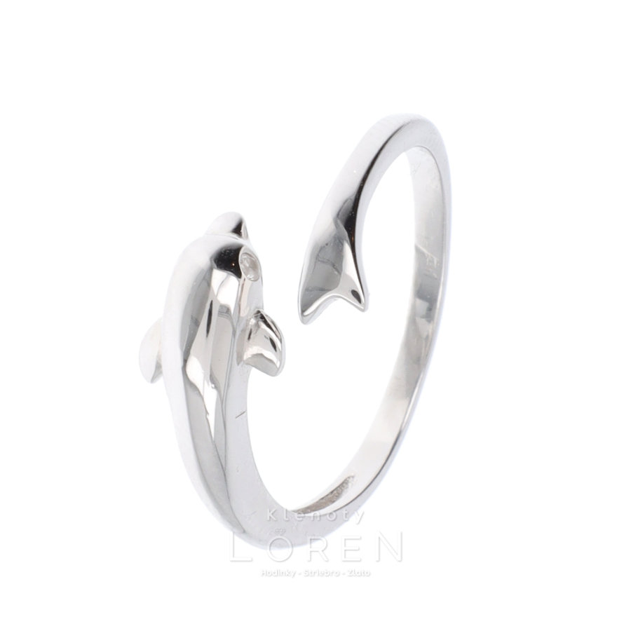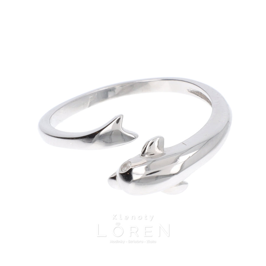 Dámsky strieborný prsteň v tvare delfína. Možnosť prispôsobiť veľkosť o dve čísla.