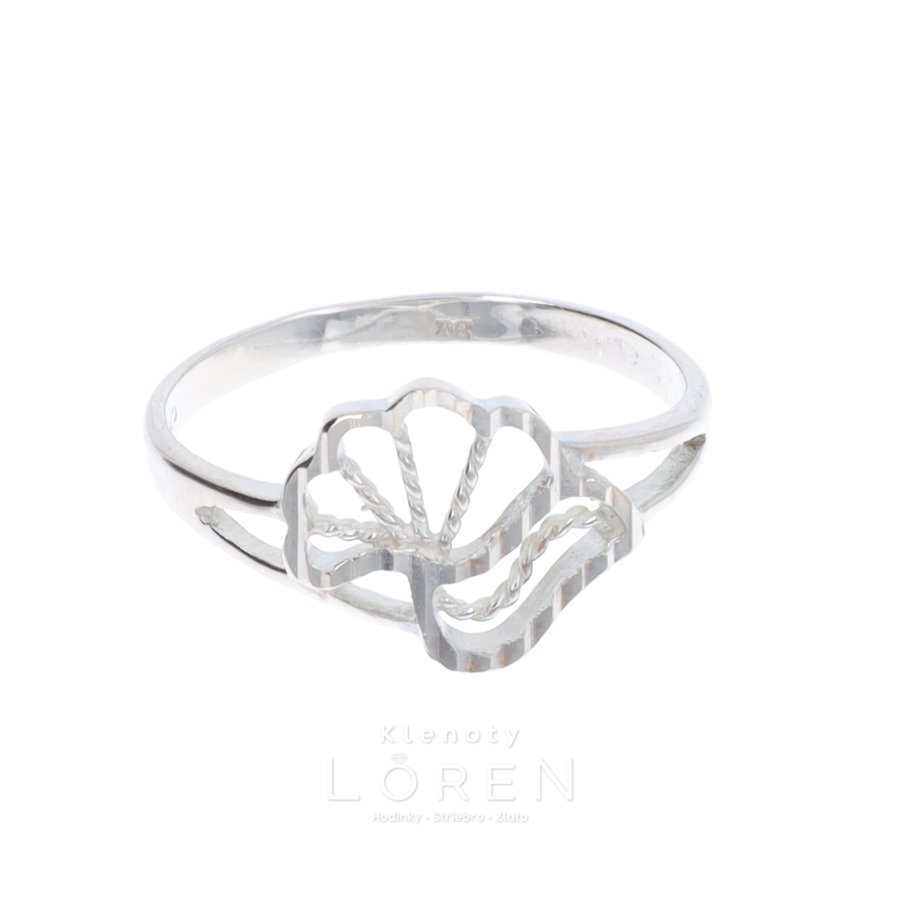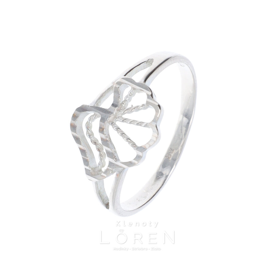 Dámsky strieborný prsteň s visiacou aplikáciou v pozlatenom prevedení.
