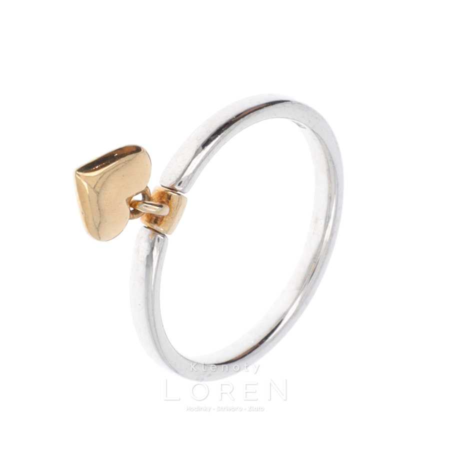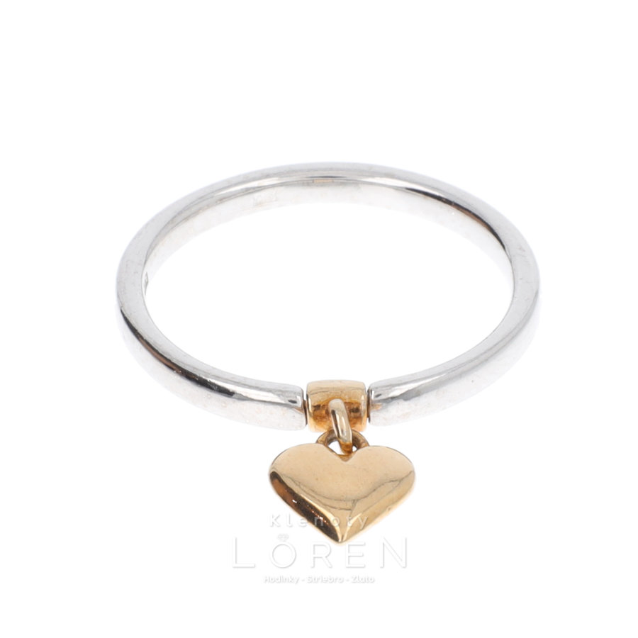 Dámsky strieborný prsteň s visiacim srdiečkom v pozlátenej povrchovej úprave.