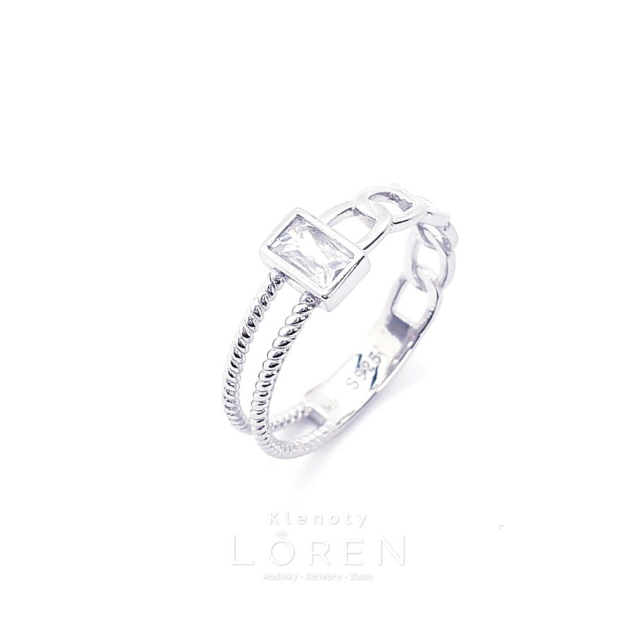 Dámsky strieborný prsteň s ružovým zirkónom s efektom popraksaného skla, s bielymi zirkónmi okolo obvodu.