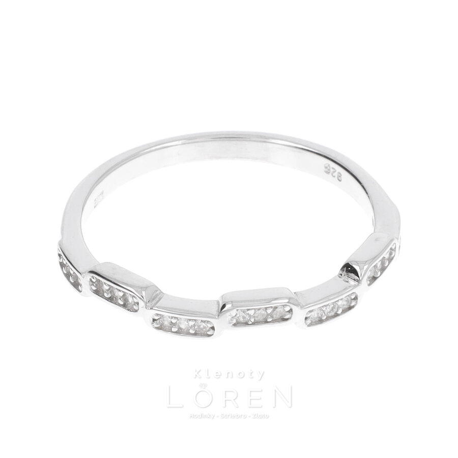 Jemný dámsky strieborný prsteň s bielymi zirkónmi.