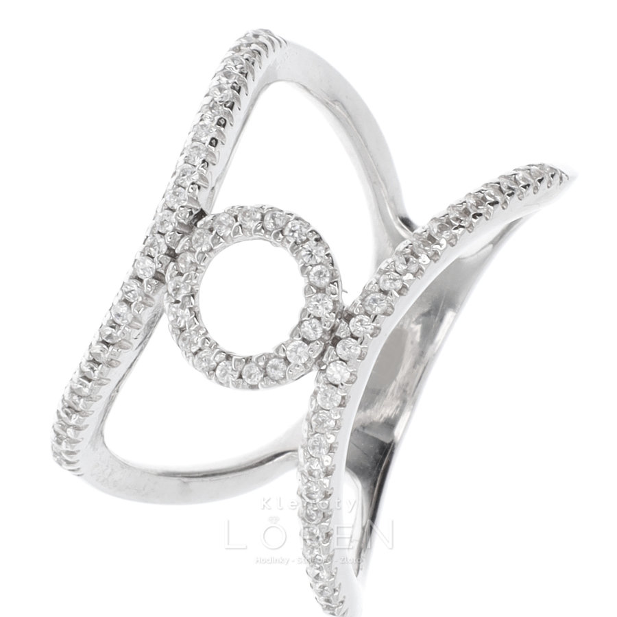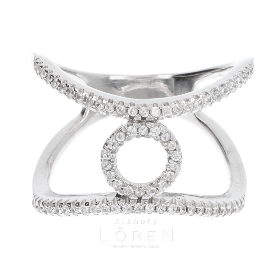 Dámsky strieborný prsteň s bielymi zirkónmi.