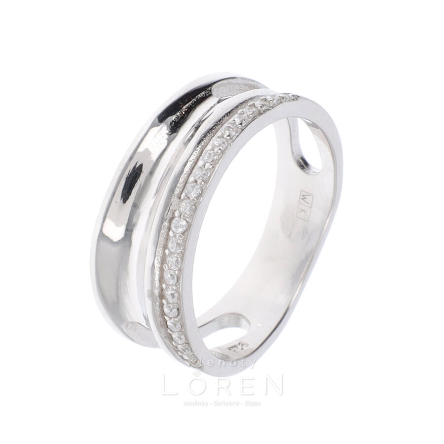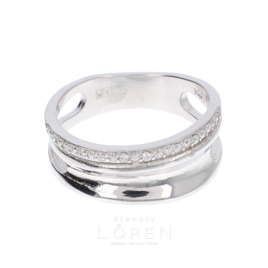 Dámsky strieborný prsteň s bielymi zirkónmi.