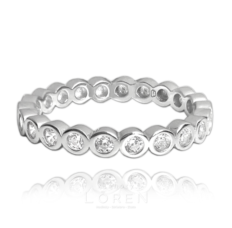 Dámsky strieborný prsteň s bielymi zirkónmi.