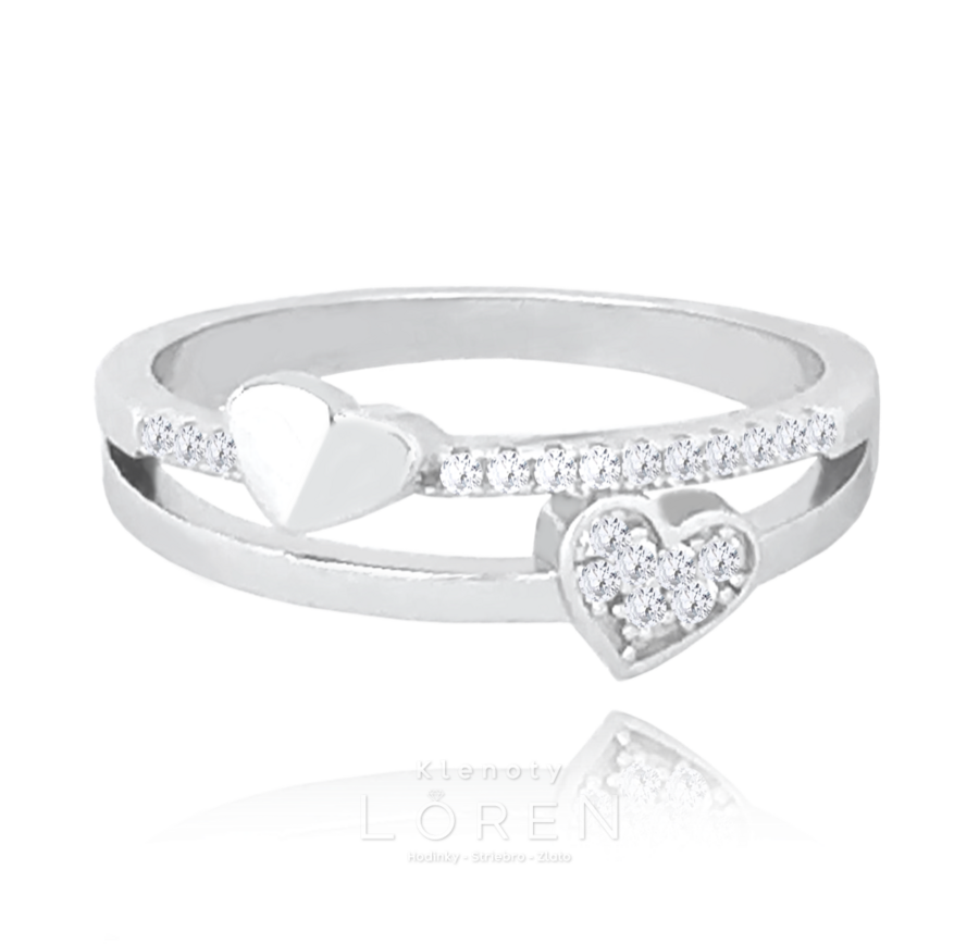 Elegantný motív srdca zdobený čírymi zirkónmi, ktoré dodávajú prsteňu jemný a žiarivý vzhľad.