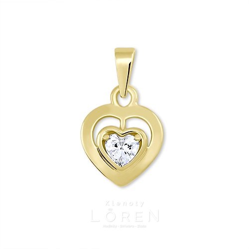 Jemný, minimalistický prívesok zo žltého zlata v tvare srdiečka so žiarivým zirkónom.
