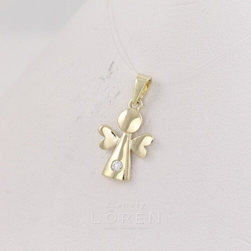 Zlatý prívesok v tvare anjela so zirkónom.