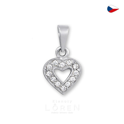 Zlatý, jemný prívesok v bielom zlate v tvare srdiečka s jemnými čírymi zirkónmi.