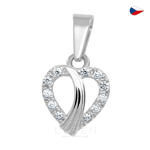 Jemný, minimalistický prívesok z bieleho zlata v tvare srdiečka so žiarivými zirkónmi.