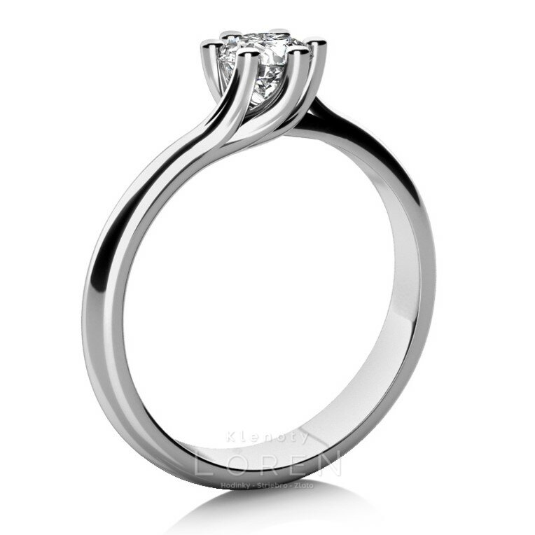 Očarujúci a jemný zásnubný prsteň vyhotovený z bieleho zlata s vysoko lesklou povrchovou úpravou.