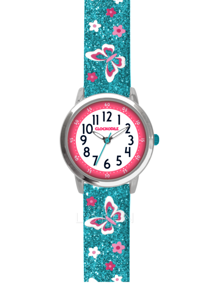Detské, dievčenské hodinky CLOCKODILE vo fialovej farbe s motýľmi.