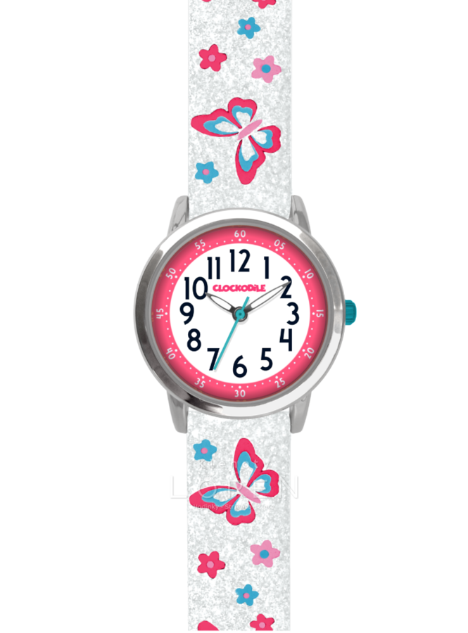 Detské, dievčenské hodinky CLOCKODILE v bielej farbe s motýľmi.