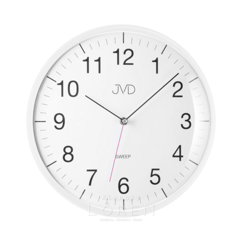 Plastové nástenné hodiny JVD v bielom prevedení.