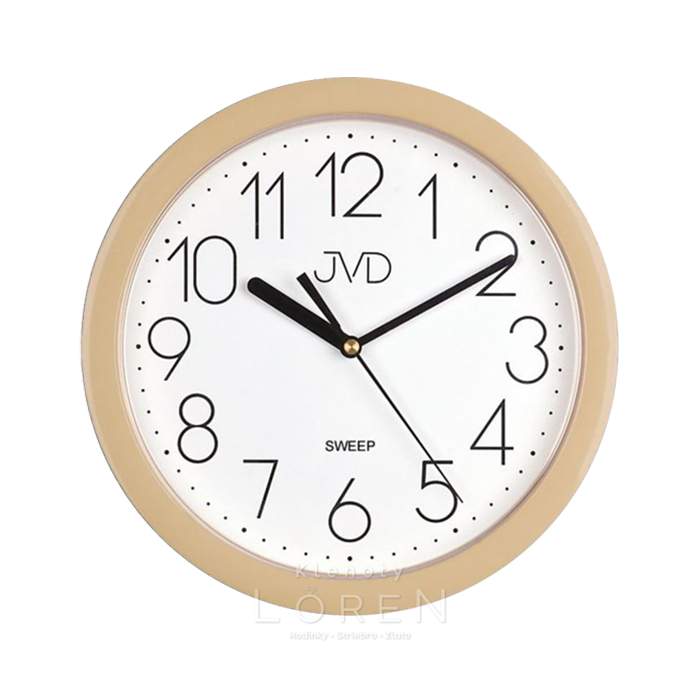 Plastové nástenné hodiny JVD v béžovom prevedení.