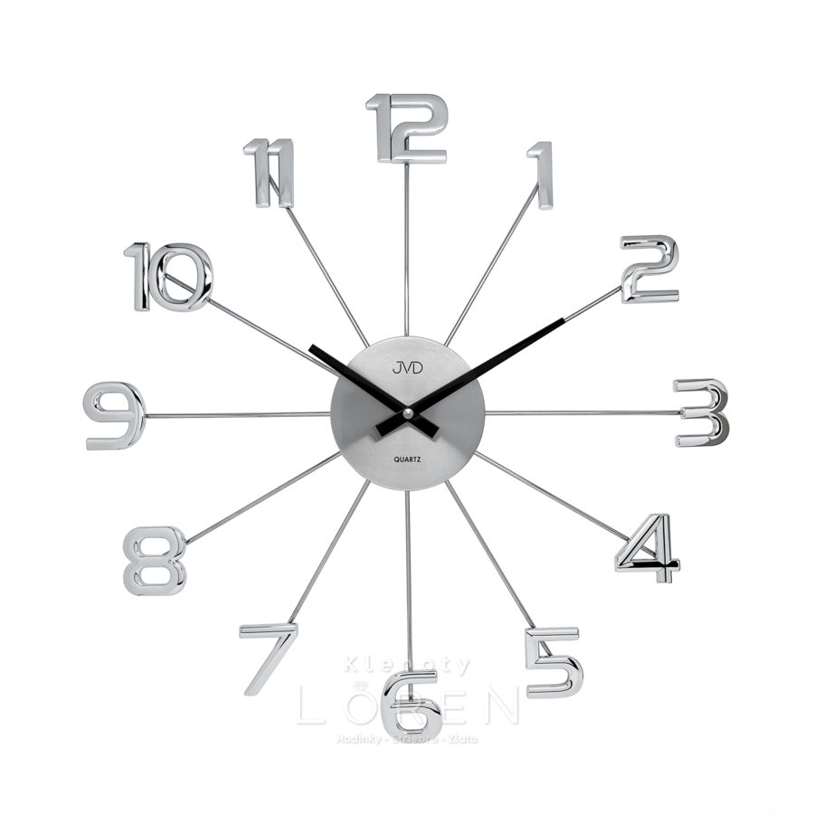 Nástenné kovové hodiny JVD v designovom prevedení.