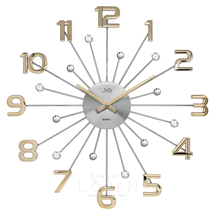 Nástenné kovové hodiny JVD v designovom prevedení.