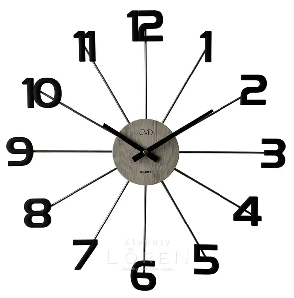 Nástenné kovové hodiny JVD v designovom prevedení.