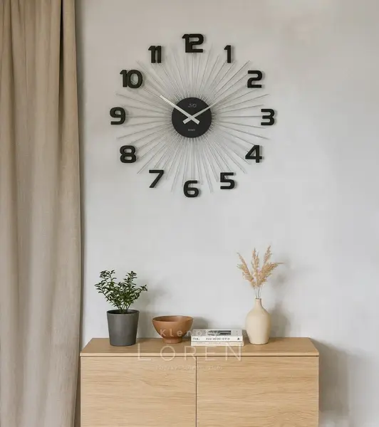 Nástenné kovové hodiny JVD v designovom prevedení.