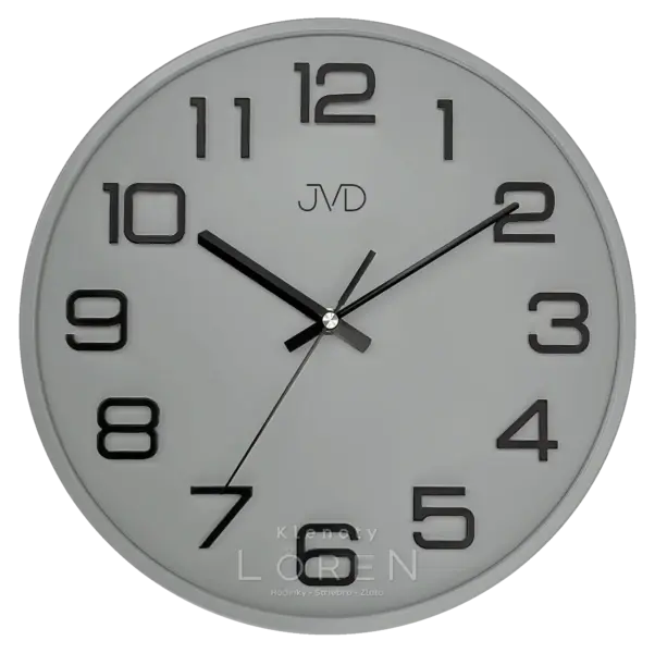Plastové nástenné hodiny JVD v šedej farbe .